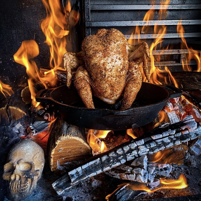 - Beginnen Sie mit der Herstellung der Gewürzmischung. Mischen Sie in einer Schüssel Paprika, braunen Zucker, Knoblauchpulver, Zwiebelpulver, getrockneten Thymian, Salz und schwarzen Pfeffer. (Sie können auch das Valhal Outdoor x The Fik Erin Viking Rub für einen würzigeren Geschmack verwenden)